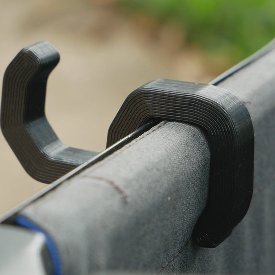 Compatible with both the original cruiser and the XL cruiser. Our new clip design just extended! Great for use with Yeti bottles, wider chairs, gear, etc. Does NOT stick out farther than wheel/fender.